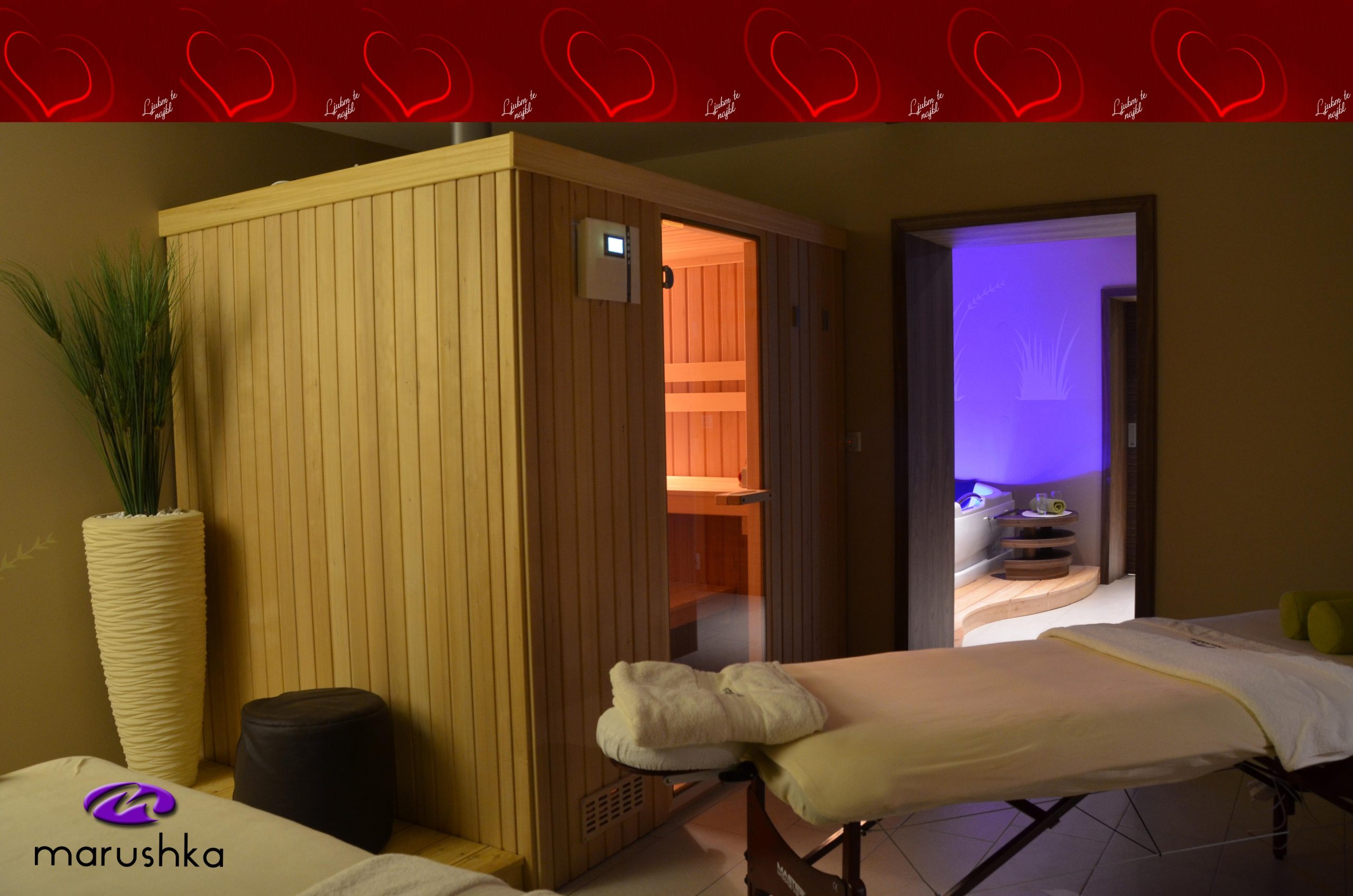 Sladka sprostitev za dva - super darilo za Valentinovo 2,5 urna zasebna uporaba prostora s savno in masažno kopalno kadjo 2 veliki brisači [...]